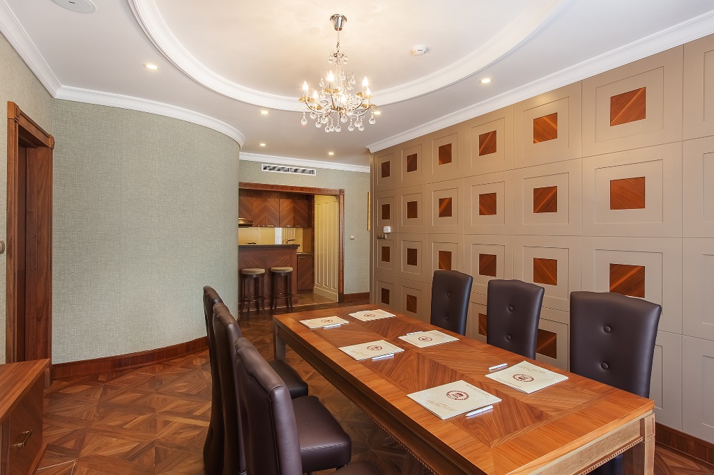 Имеются гостиная, две спальни, кабинет, обеденный зал, гардероб, две ванных комнаты, с двумя душевыми кабинами, туалетом, ванной, гостевой туалет, кухонный уголок.