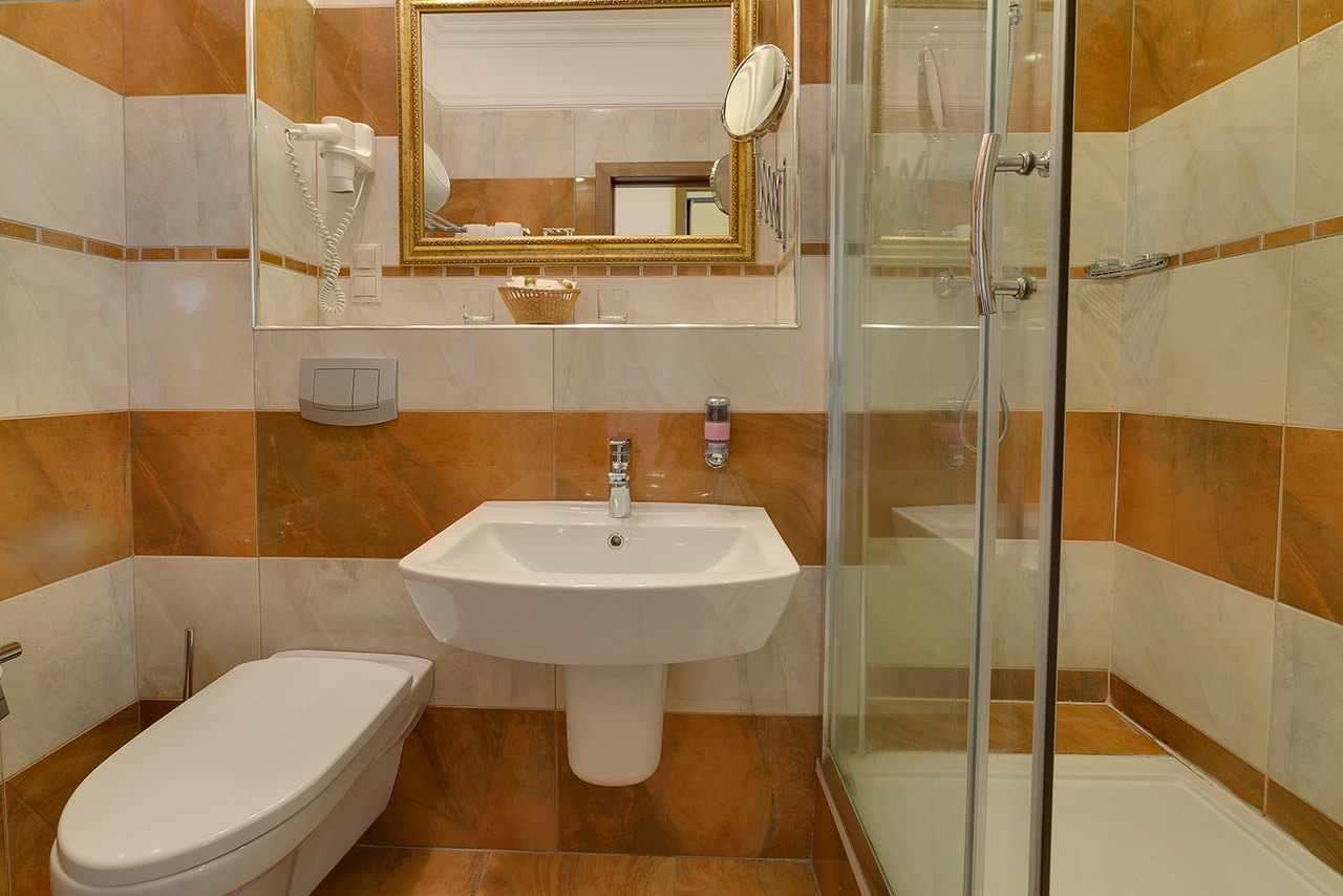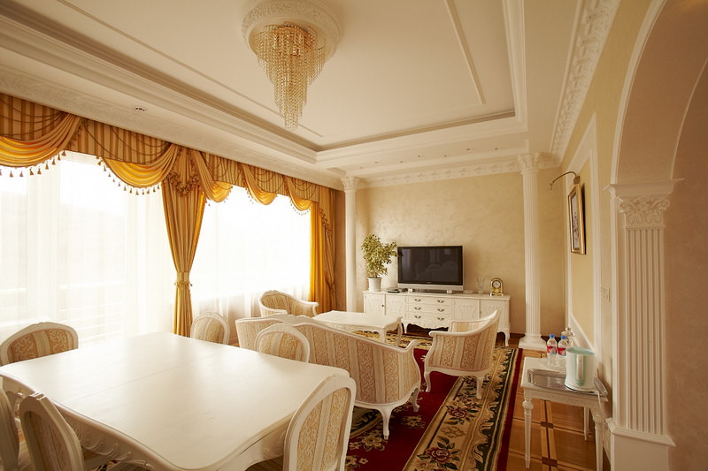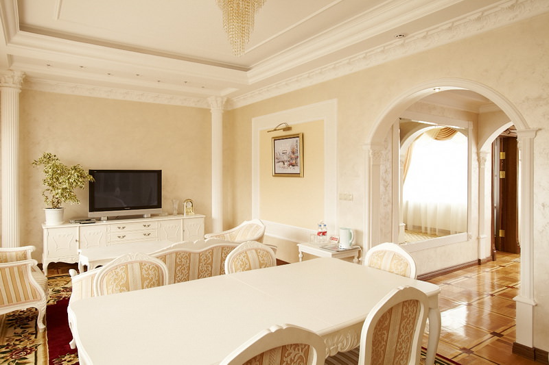 Двухместные номера "Сюит" состоят из трех комнат - гостиной, спальни и кабинета. Укомплектованы гигиеническими средствами индивидуального пользования (один раз на заезд). Площадь номера 81 м2.